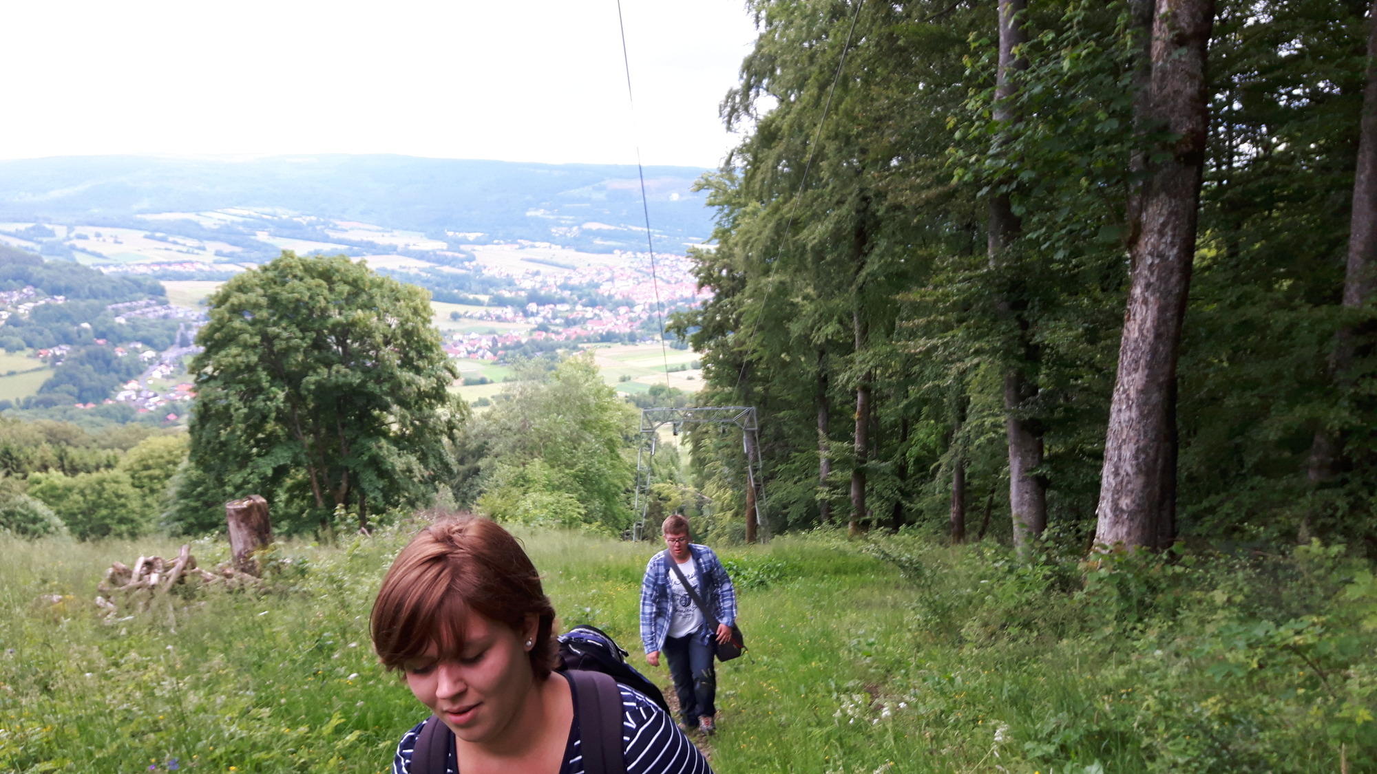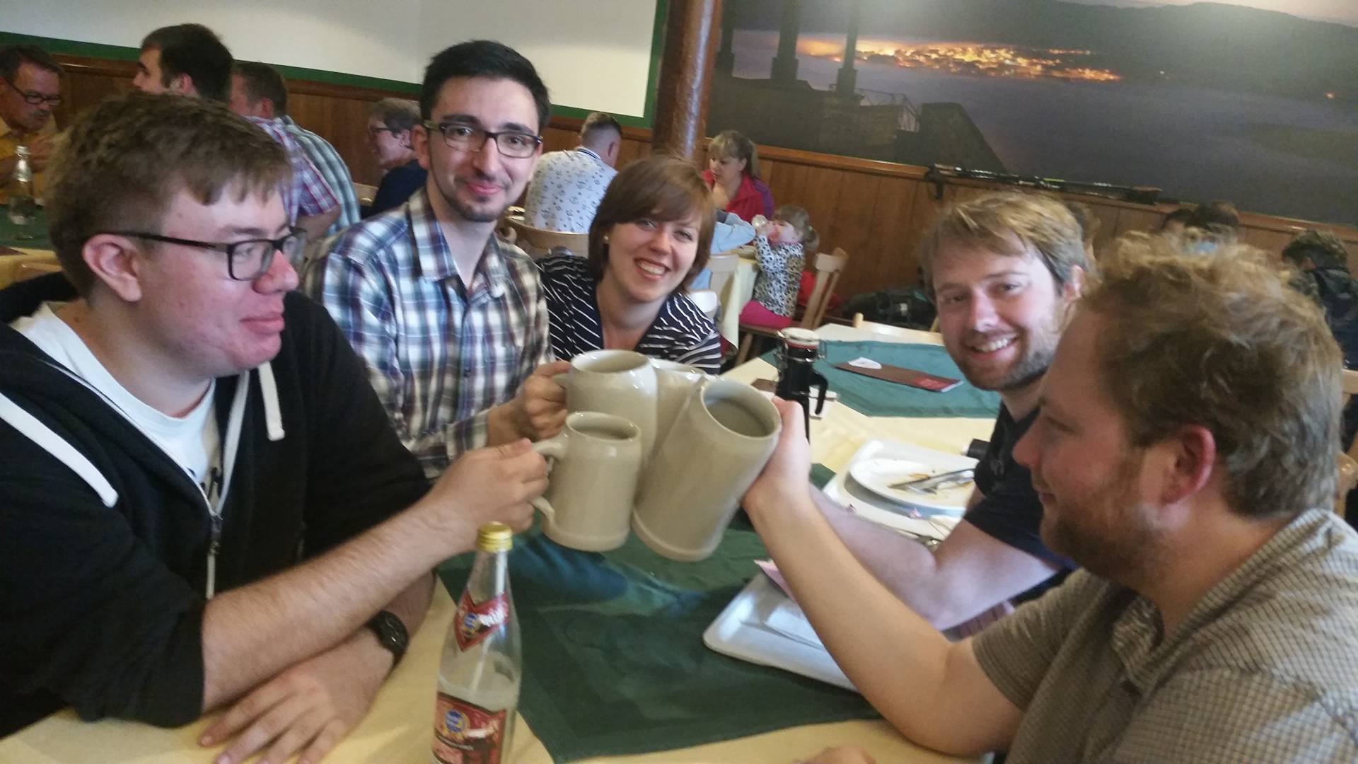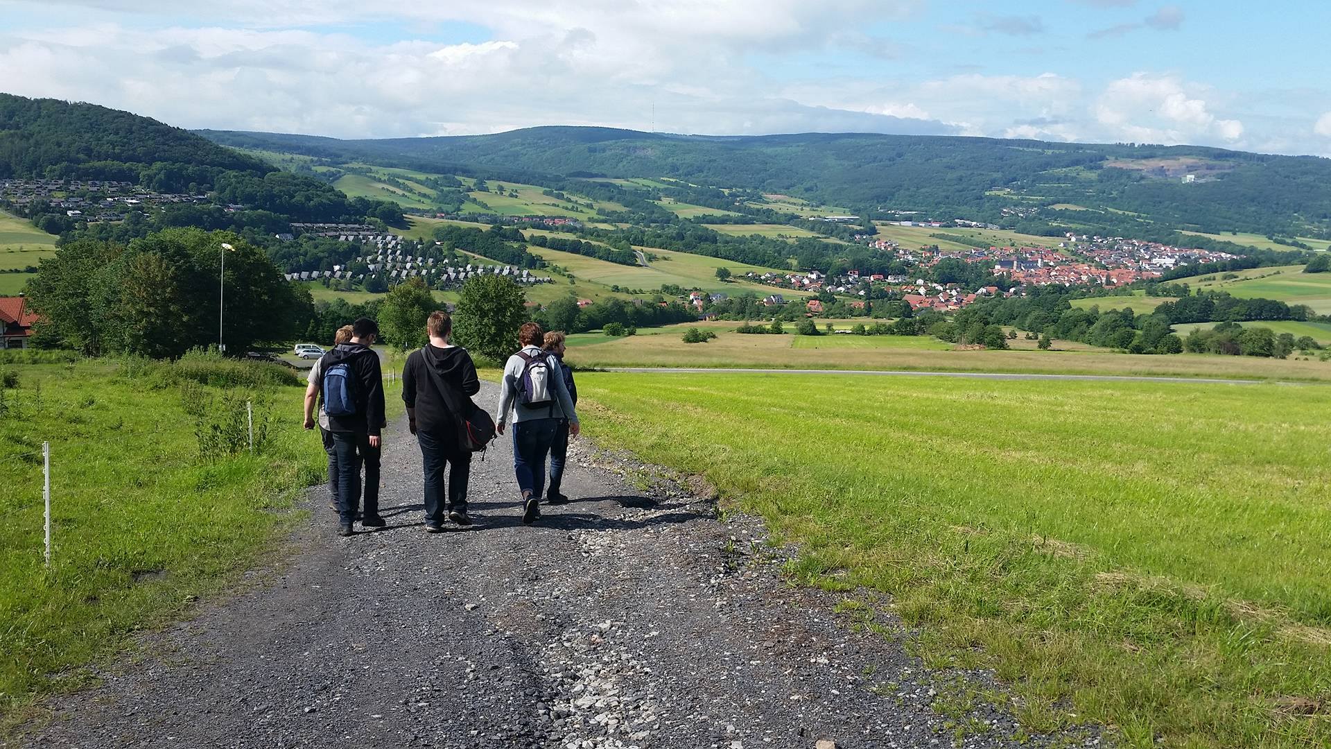 Bunt gemischt aus allen Semestergruppen konnte so unterwegs ein intensiver Austausch der Studierenden stattfinden. Zu Fuß ging es von Haselbach auf direktem Weg hinauf zum Kreuzberg. Wie das Mittagessen und das gute Kreuzbergbier gehört natürlich auch ein Lied in der Wallfahrtskirche dazu, bei dem sich spontan auch die Kirche nach und nach füllte und sich weitere Mitsänger fanden. Über das Neustädter Haus ging es dann wieder zurück zum Glaubensflitzer.